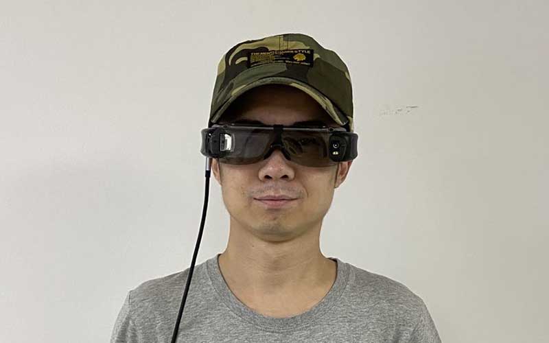 智能眼鏡的近眼顯示器,顯示紅外圖像、人的距離、體溫數值